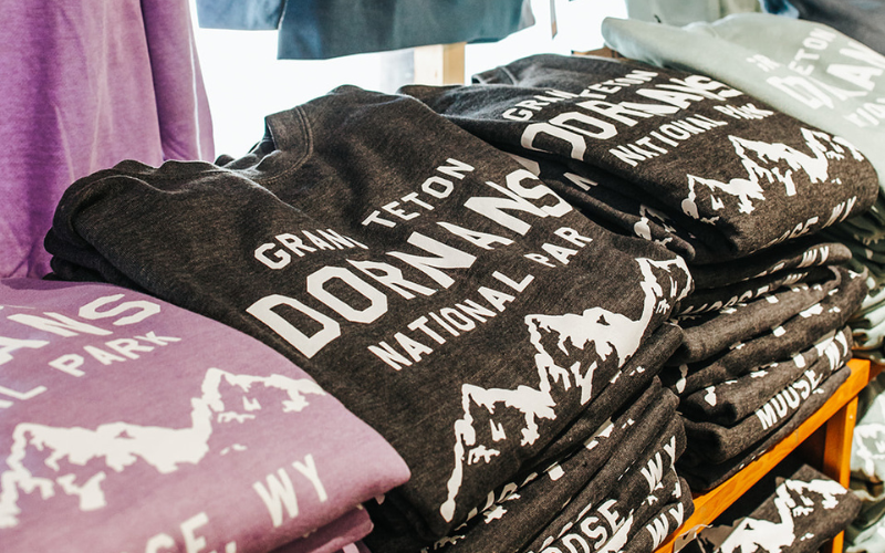 One of the most popular items at Dornans is our collection of Dornan’s branded apparel. These pieces have become souvenirs for visitors who want to remember their time in Jackson Hole and Grand Teton National Park.