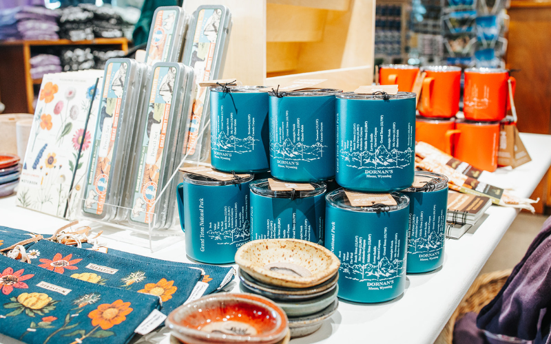 In addition to apparel, Dornans Gift Shop features a wide selection of souvenirs and specialty gifts inspired by the Grand Tetons. For generations, Dornans has been a beloved stop for visitors exploring Grand Teton National Park and Jackson Hole.